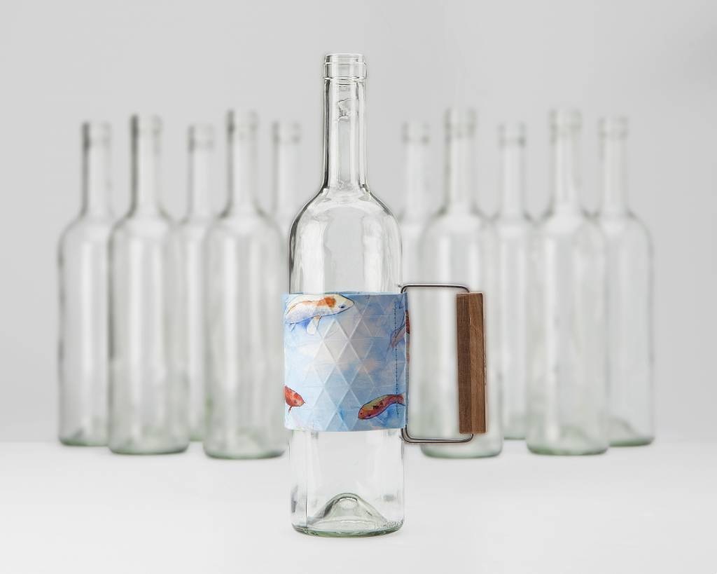 Slide the strap over a bottle and turn it into a center piece on your table or use it in your kitchen to enlighten your olive oil bottle. Our bottle grip is made of solid teak wood with engraved logo and durable coated paper which can be cleaned easily.