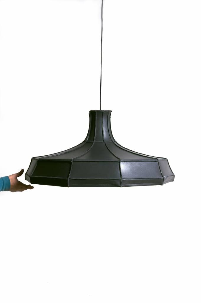 Reminiscent of old industrial steel lampshades, our version uses soft lambskin leather with raw seams that define its unique shape and design. The lampshade is easily assembled and comes in two different forms. The horizontal design is ideal for regular ceilings. The vertical design gives rooms with high ceilings a distinctive lighting concept.