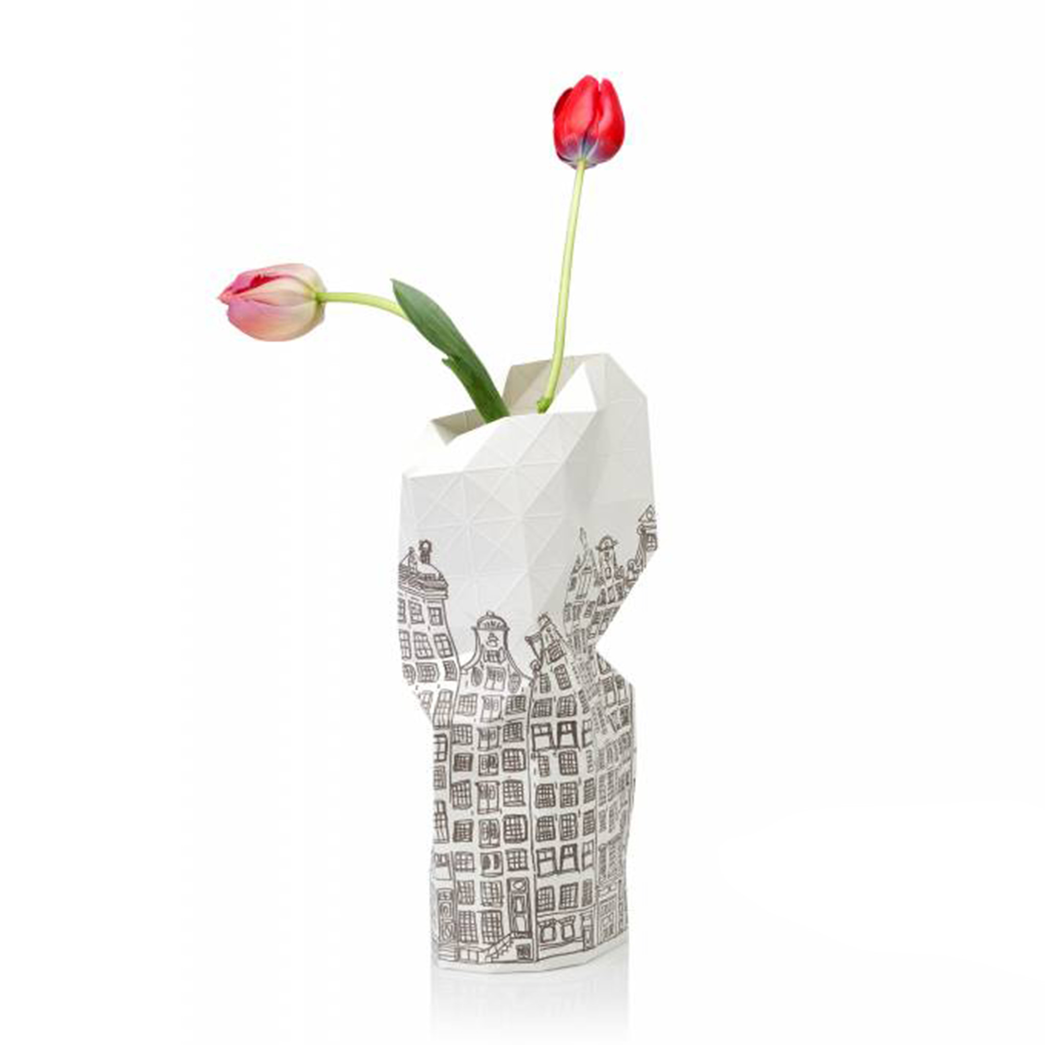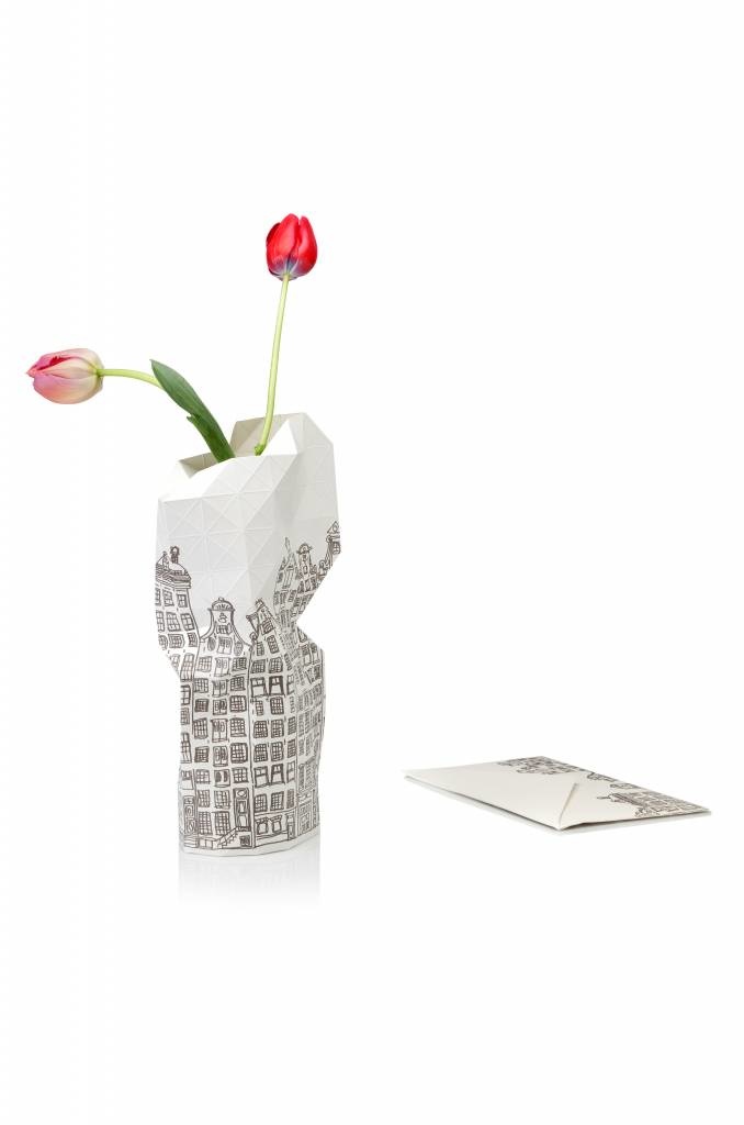 Empty bottles can literally be found anywhere in the world; from well-off and developed areas to impoverished city slums. And they can hold their water, making it an ideal vase. The only thing needed to make it look pretty is a beautiful cover. Our paper vase covers are hand folded by the women of Tiny Miracles. Their unique triangular paper design ensures easy assembly in under a minute.