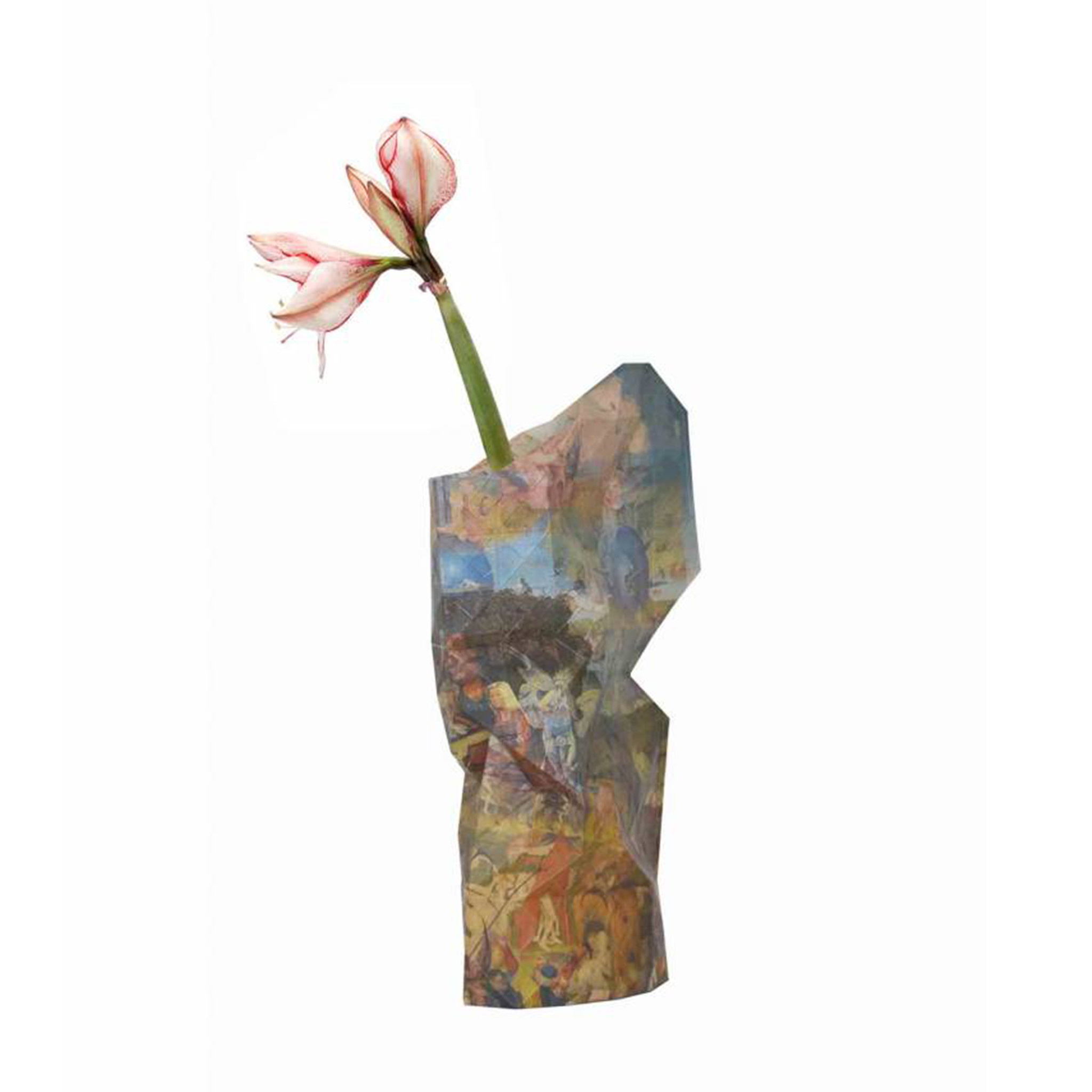 Empty bottles can literally be found anywhere in the world; from well-off and developed areas to impoverished city slums. And they can hold their water, making it an ideal vase. The only thing needed to make it look pretty is a beautiful cover. Our paper vase covers are hand folded by the women of Tiny Miracles. Their unique triangular paper design ensures easy assembly in under a minute.