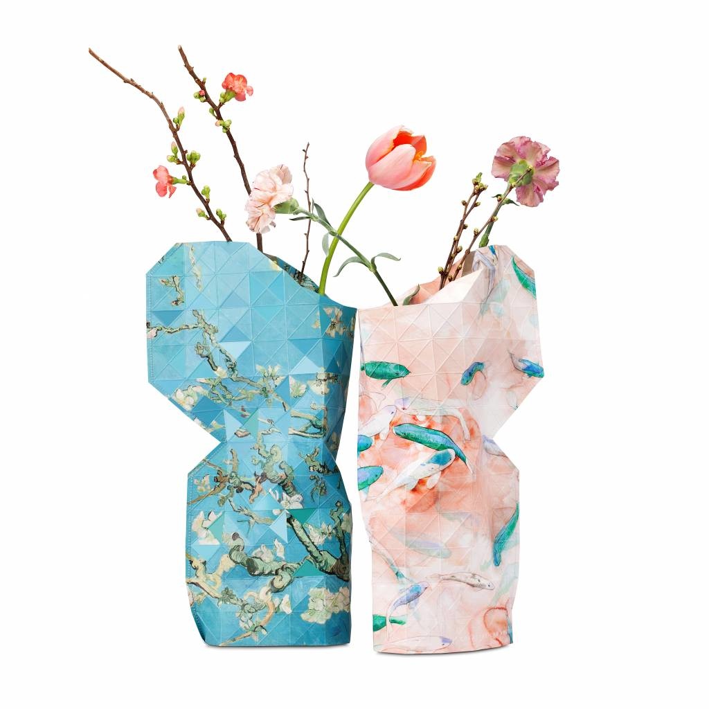 Empty bottles can literally be found anywhere in the world; from well-off and developed areas to impoverished city slums. And they can hold their water, making it an ideal vase. The only thing needed to make it look pretty is a beautiful cover. Our paper vase covers are hand folded by the women of Tiny Miracles. Their unique triangular paper design ensures easy assembly in under a minute.